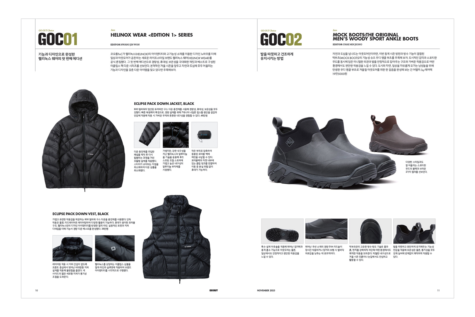 GO OUT KOREA는 일본 GO OUT의 한국 라이선스판으로, 아웃도어를 하나의 라이프스타일로 제안하는 국내 대표 매거진입니다.